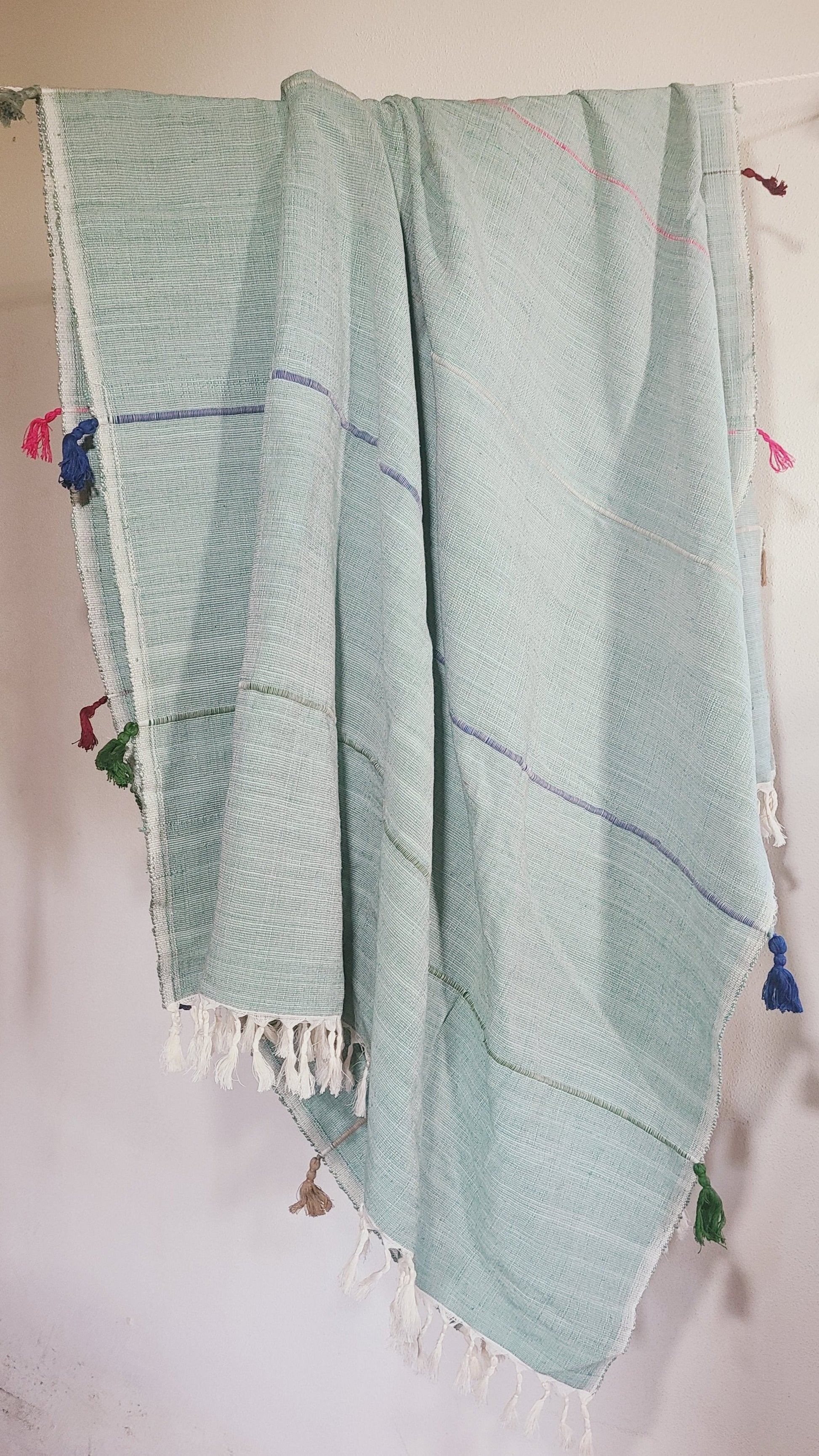 Wrap yourself in cozy comfort with our Cotton Beach Blanket Rug. Handcrafted on wood looms in Oaxaca, Mexico, this blanket offers a unique blend of style and quality. Perfect for a beach day or snuggling up on cooler nights, it's a must-have addition to your home or hotel. Size 128cm x 228cm.