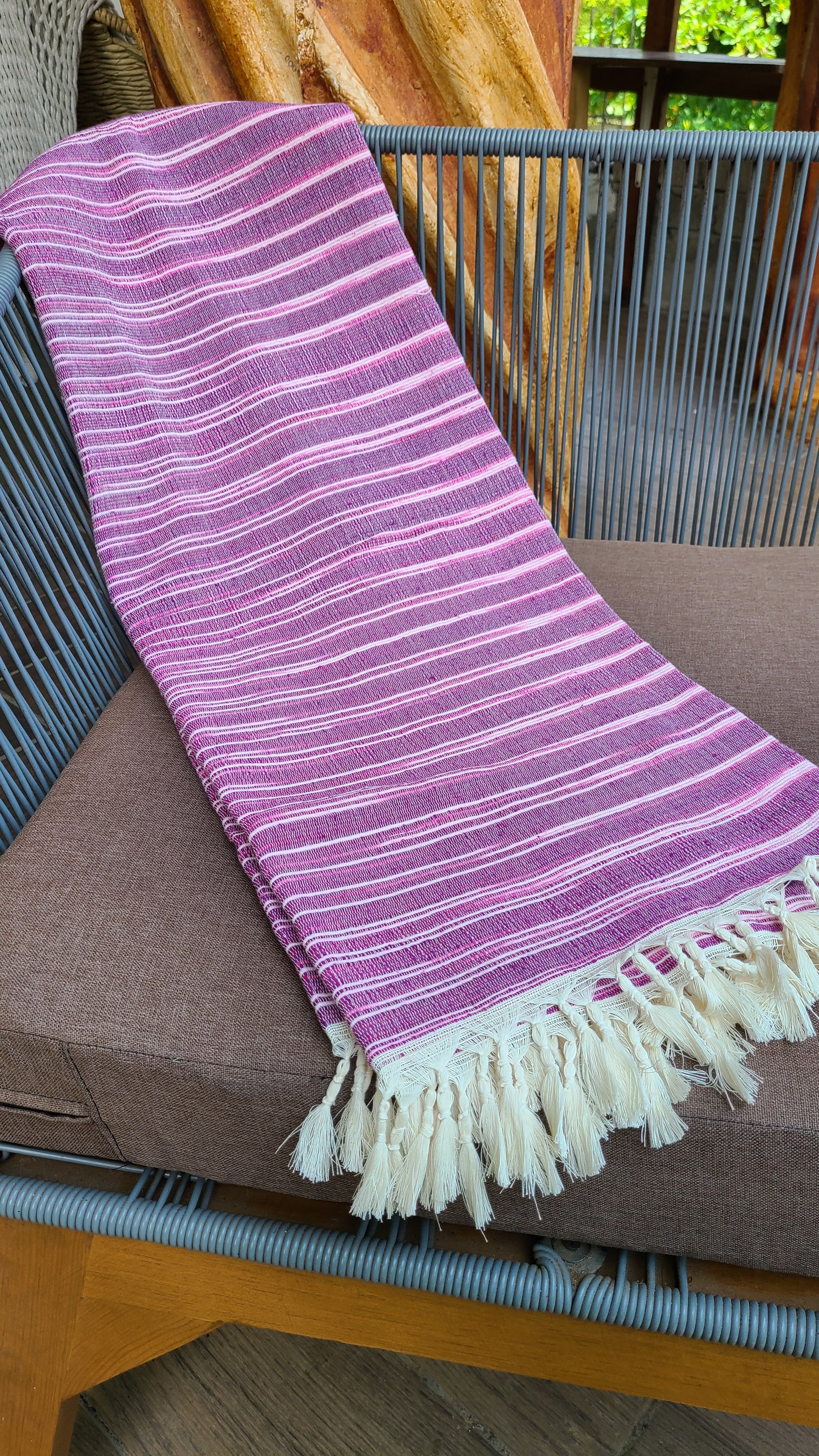 Purple & White Cotton Beach Throw Rug.