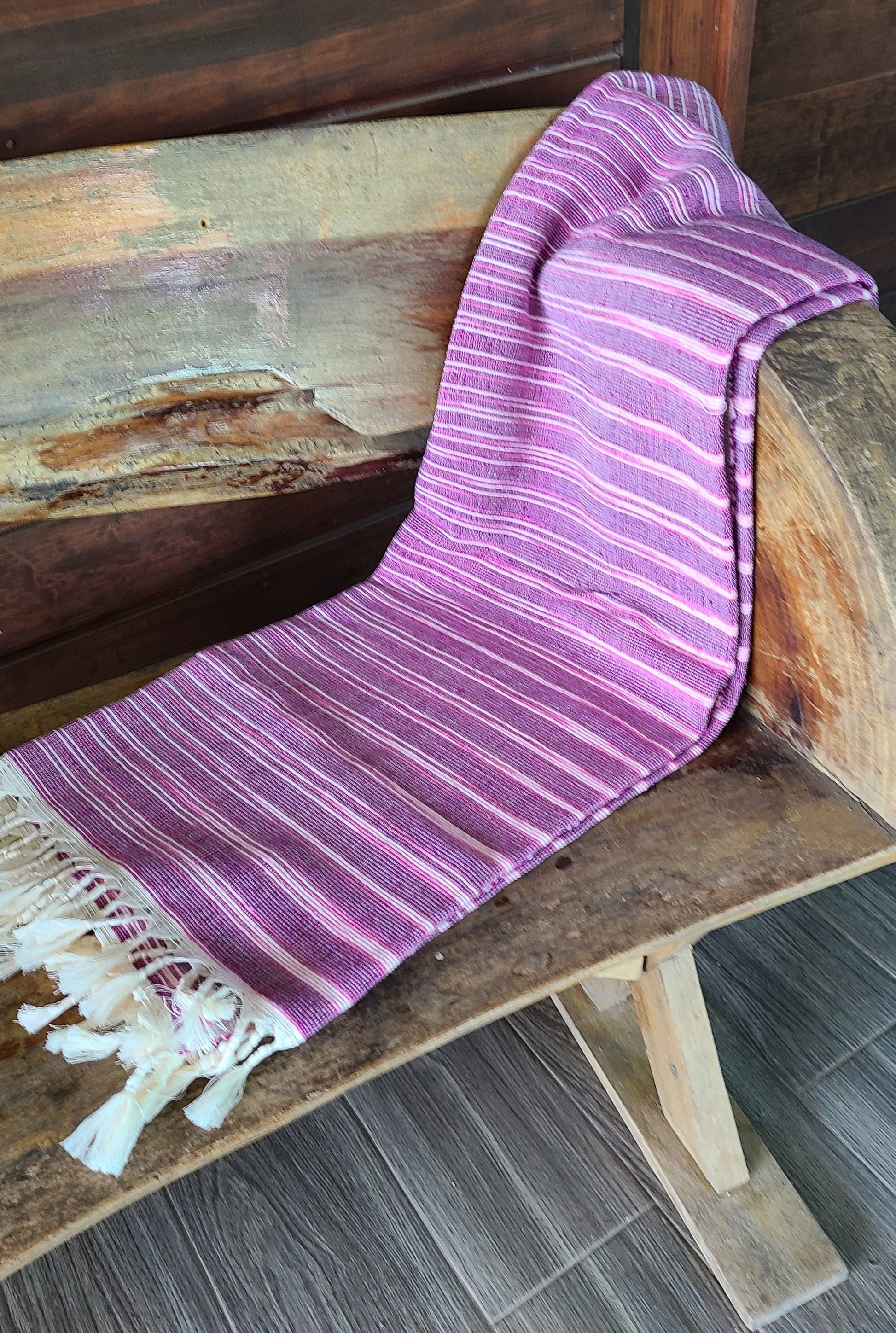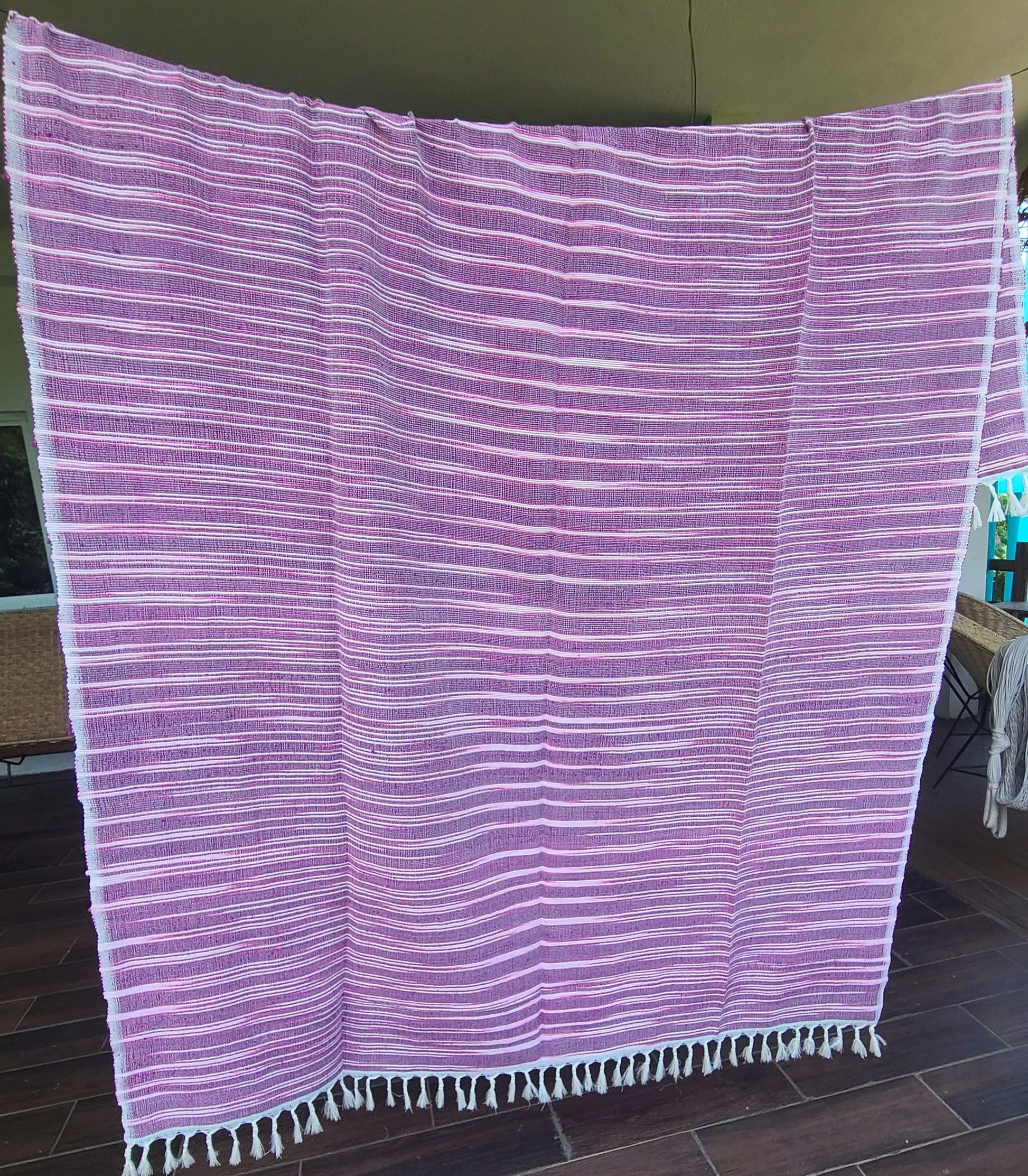 Wrap yourself in cozy comfort with our Cotton Beach Blanket Rug. Handcrafted on wood looms in Oaxaca, Mexico, this blanket offers a unique blend of style and quality. Perfect for a beach day or snuggling up on cooler nights, it's a must-have addition to your home or hotel. Size 128cm x 228cm.
